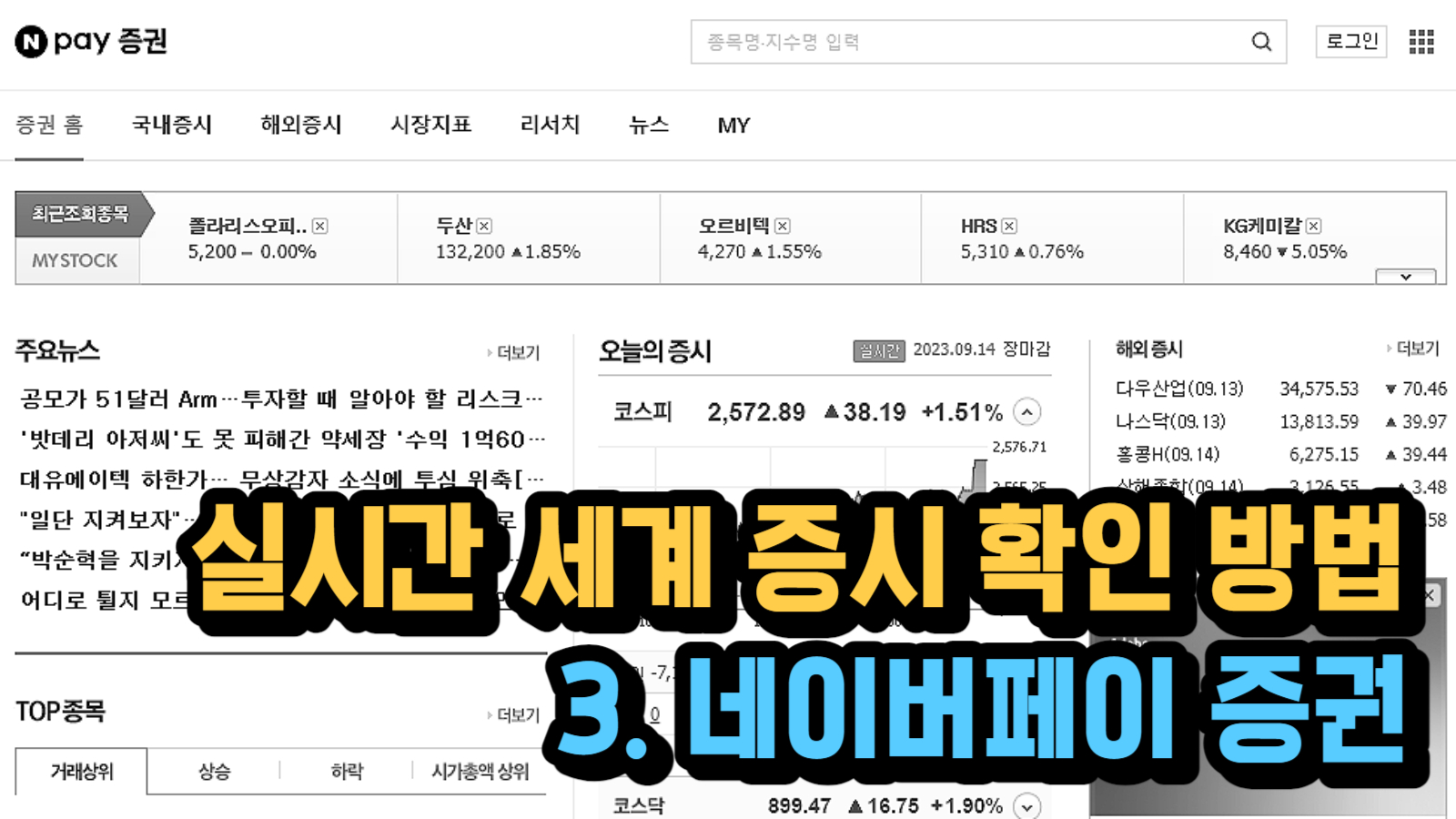 직장인은 우리나라 증시에 참여하기 쉽지 않죠? 그래서 해외증시로 눈을 돌리게 됩니다. 퇴근하고 참여할 수 있거든요. 그래서 실시간으로 세계증시를 확인할 수 있는 방법을 찾으시는 분들이 많습니다. 함께 보실까요?
